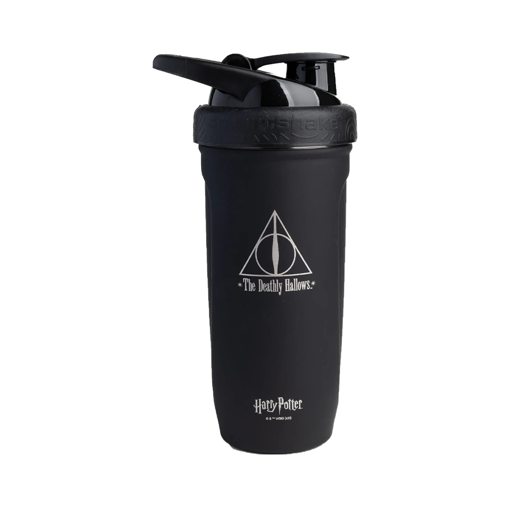 Шейкер SmartShake Reforce из нержавеющей стали по мотивам «Гарри Поттера» отличается прочной конструкцией и обеспечивает равномерное смешивание, позволяя вам получать необходимое топливо для тренировок, где бы вы ни находились.